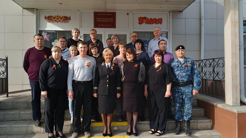 В преддверии 80-летия Победы в Великой Отечественной войне судьи и работники аппарата Притобольного районного суда присоединились ко Всероссийской акции «Георгиевская ленточка». Главный девиз акции: «Я помню! Я горжусь!». Федеральным законом от 29.12.2022 года № 579-ФЗ «О Георгиевской ленте и внесении изменений в отдельные законодательные акты Российской Федерации» Георгиевская лента признана символом воинской славы России, черная полоска которой - это дым войны, оранжевая - пламя Победы, напоминает о миллионах жизней, отданных за наше будущее. Ленту принято носить слева на груди, как знак того, что подвиг солдат навсегда в сердце потомков.