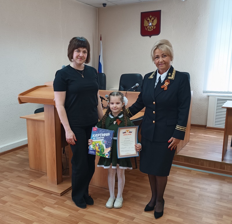 6 мая на торжественном собрании, посвященном празднованию 80-летия Победы в Великой Отечественной войне 1941-1945 годов, Советом судей Курганской области подведены итоги конкурсов детских рисунков и видеороликов, посвященных 80-й годовщине Победы в Великой Отечественной войне 1941-1945 годов. Организатором конкурса являлся Совет судей Курганской области. Главными задачами конкурса детских рисунков, посвященного Дню Победы в Великой Отечественной войне 1941-1945 годов, являлось патриотическое воспитание детей работников судебной системы Курганской области, укрепление гражданского самосознания подрастающего поколения, формирование средствами изобразительного искусства уважения к отечественной истории и подвигу советского народа в победе над фашизмом, активной гражданской позиции, позитивных интересов. Участниками конкурса стали дети судей, работников аппарата судов Курганской области и Управления Судебного департамента в Курганской области в возрасте до 17 лет включительно. От Притобольного районного суда участие в конкурсе приняла дочь помощника судьи Деркач Юлии Александровны – Марианна, представившая на конкурс свой рисунок. 7 мая 20205 года в торжественной обстановке председателем Притобольного районного суда Курганской области С.А.Папуловой Марианне были вручены диплом и подарок. Поздравляем участника конкурса!![]() С.А.Папулова, Председатель суда Статья опубликована в газете «Притоболье» № 19 (9502) от 16.05.2025 года |