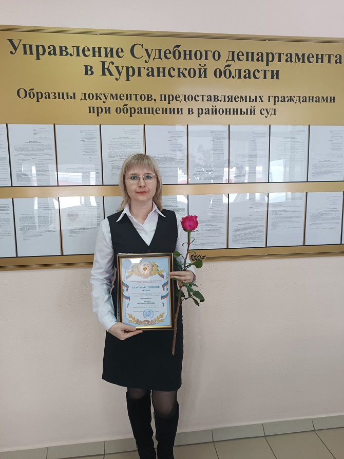 5 марта 2026 года в Управлении Судебного департамента к Курганской области состоялось торжественное награждение победителей и участников конкурса «Лучший по профессии» по итогам 2025 года, в числе которых оказалась Тупикина Екатерина Петровна, секретарь судебного заседания Притобольного районного суда, которая награждена благодарственным письмом Управления Судебного департамента в Курганской области. ![]() С.А.Папулова, председатель суда. Статья опубликована в газете «Притоболье» № 10 (9544) от 13.03.2026 года. |